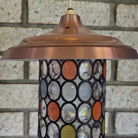 retro lampe, vintage lampe, vegglampe, taklampe, pressglass, stjernemønster, glasslampe, 60-tall, 70-tall, retro belysning, vintage belysning, glasskuppel, interiør lampe