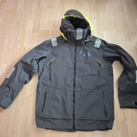 Helly Hanssen Ægir Ocean. Jakka er så og si ubrukt, men manskjettene er klipt til noe, og dessverre er høyre manskjett kanskje klipt litt vel romslig. Det er mulig å skifte denne om man ønsker.