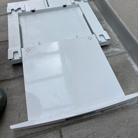 Selger en pent brukt stableramme. Vi har brukt den til å stable vaskemaskin og tørketrommel. Rammen har et uttrekkbart brett som har vært veldig greit å ha til å brette klær for eksempel.
