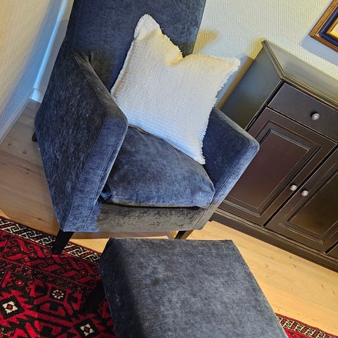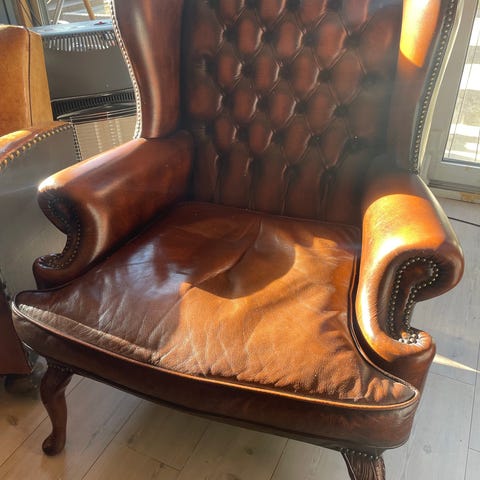 Vakker stol i chesterfield stil fra italienske Natuzzi, selges med tungt hjerte. Dette merket er kjent for svært høy kvalitet og ditto priser ☺️ Stolen er i cognacfarget lær, pent brukt, uovertruffen comfort. Den har en liten utglidning i siden bak (se siste bilde) Det vises nesten ikke, det kan antagelig enkelt repareres, og det har ingen betydning for bruk. Stolen er tung, bør hentes av to sterke karer ☺️