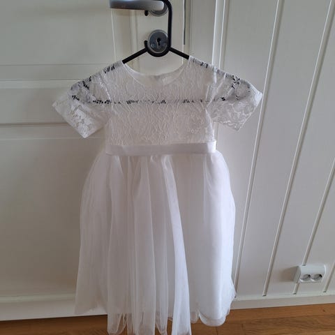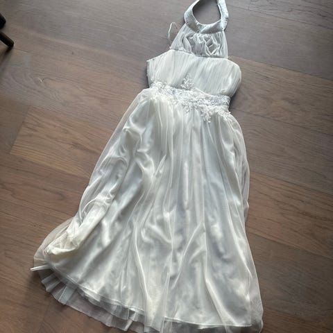 Hvit enkel og fin brudepikekjole selges rimelig.