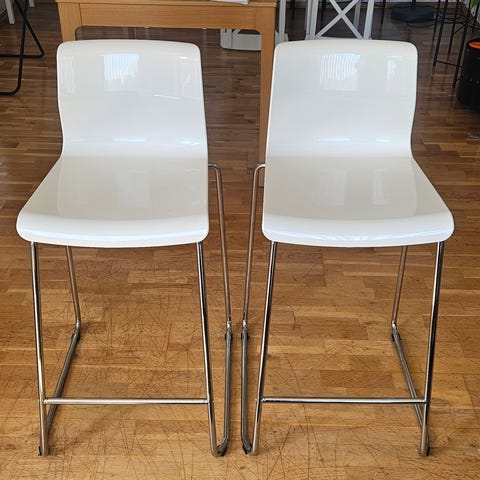 Hvite skinn og stål krakker .. pris pr stk