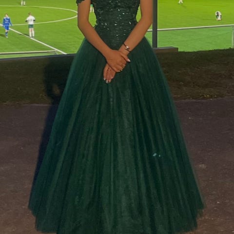 Pent brukt ballkjole i XS, men passer opp til en liten M siden det er justering i rygg.