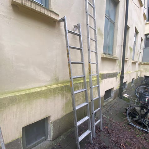 Zarges Z500 arbeidsplattform i aluminium med trappetrinn og repos. Plattformen er frittstående med støttebøyler og rekkverk for ekstra stabilitet. Maksimal belastning er 150 kg, og stigen er sertifisert etter EN 131. Egner seg for arbeid i høyden der det er behov for en stabil plattform, for eksempel ved vedlikehold, montering eller inspeksjon utendørs eller innendørs.total hjøde 3 meter plate som står på 2 meter fra baken 60 brede