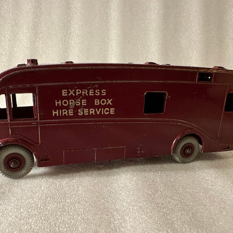 1 stk modell av en stor hestehenger, i størrelse 1:60, ca 20 cm lengde, og fra MAJORETTE.