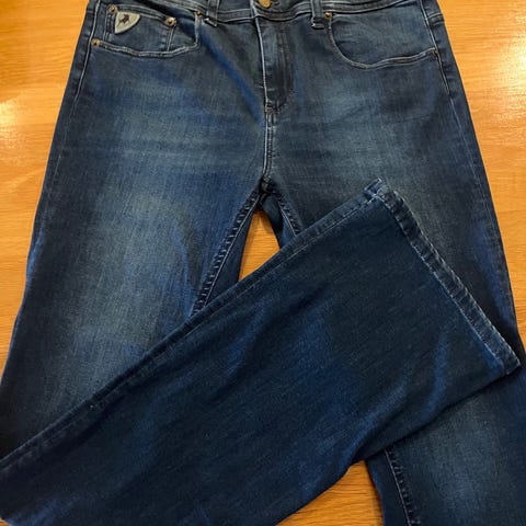 Lois jeans for dame i blå denim. Buksene har livvidde W30 og er merket størrelse L. Klassisk femlommersmodell med knapper i front.