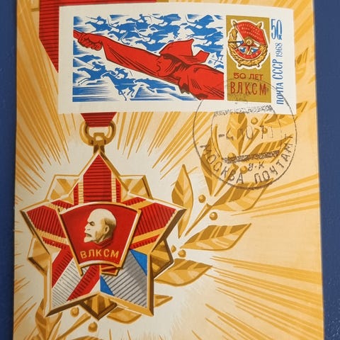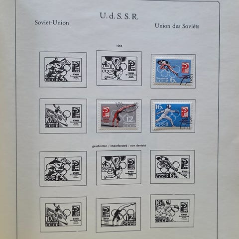 Litt rufsete Innstikkbok 16 sider med 72 miniark fra Sovjet / CCCP. Se bilder som viser alle miniarkene. Hentes på Jessheim eller sendes mot forhåndsbetaling pluss porto. Porto kr 80,- som sporbar postpakke. Se også mine andre annonser.