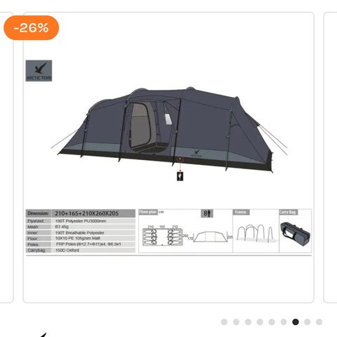 Romslig og solid familietelt til salgs. Perfekt for campingtur, fotballturneringer eller helgetur.