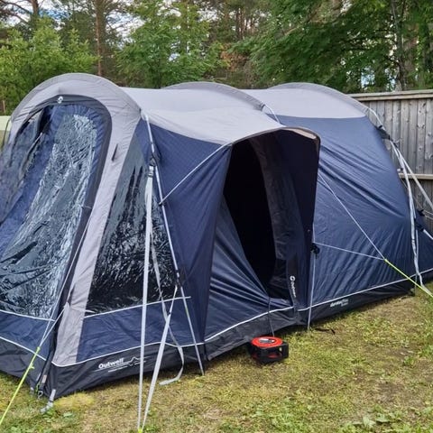 Teltet er et Outwell Lawndale 500, et kvalitetstelt med god ståhøyde i oppholdsrommet og separat sovekabin. Teltet har plass til opptil 5 personer og passer fint for både familie og venner på tur.