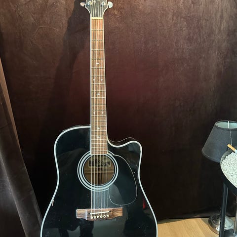 Dette er en solid og velspillende gitar fra Takamine, kjent for god kvalitet og god lyd. Den har innebygd pickup/preamp slik at den enkelt kan kobles til forsterker eller PA-anlegg – perfekt både til øving, spilling hjemme og live.