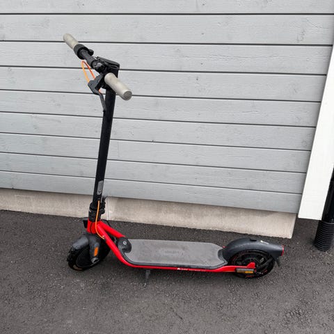 Ninebot elektrisk sparkesykkel i svart farge. Modellen har integrert frontlys, reflekser og digitalt display som viser hastighet og batterinivå. Sparkesykkelen har brede dekk og solid fotbrett for stabil kjøring. Egnet for én voksen bruker og til kortere transportetapper på asfalt og jevnt underlag.