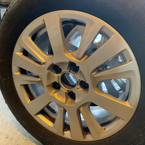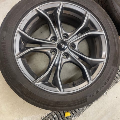 Dekkene er kjørt lite med. Ble kjøpt i 2025.Den ene felgen er det litt mye kast i. Felgene er ikke fine.