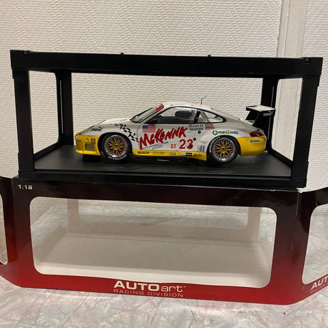 Utstillingsmonter i gjennomsiktig akryl med sort bunn. Egnet til å beskytte og vise frem gjenstander som modellbiler, passer til skala 1:18.
