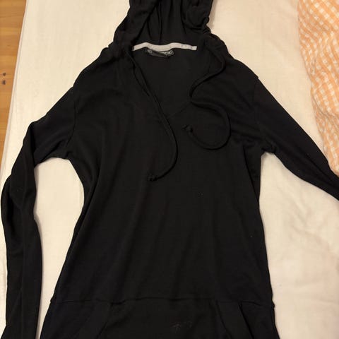 Gir bort en svart vest med rosa hette