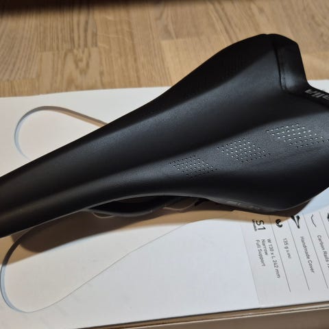 Setet er sparsommelig brukt i noen sesonger, selges da jeg endelig har innsett at jeg må ha bredere sete. Bytte i godt 155mm sete kan være av interesse (S-works Toupe, Power feks, mellomlegg mulig).