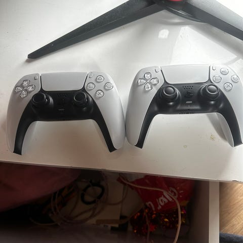 Så si ubrukt Sony PlayStation 5 DualSense kontroller i hvit farge. Trådløs spillkontroller beregnet for PlayStation 5-konsoll. Kontrolleren har innebygde triggere, styrespakker, berøringsflate og integrert høyttaler, samt USB-C-tilkobling for lading og kablet bruk.