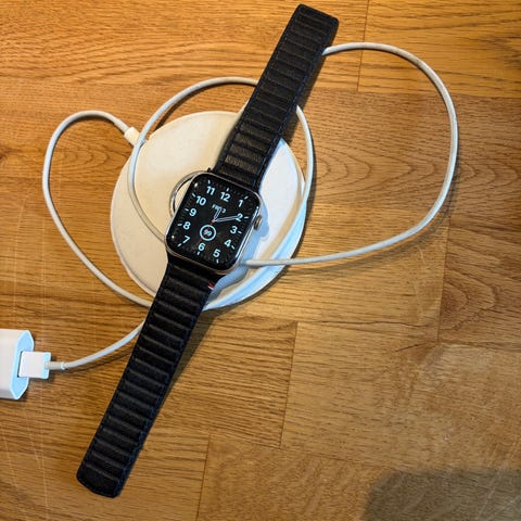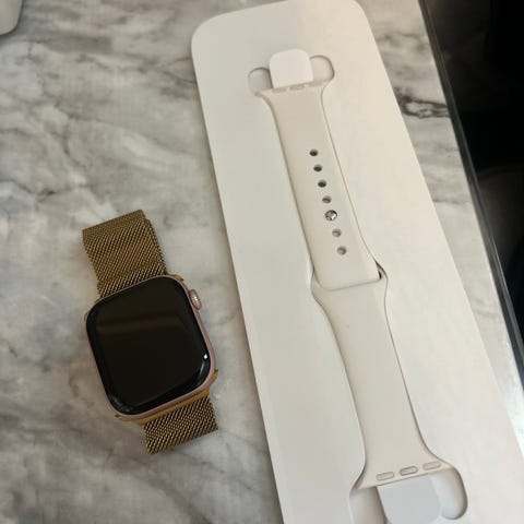 Apple Watch series 9 GPS 41 mm. Urkasse i aluminium farge stjerneskinn. Noen lette riper på skjermen, men fortyrrer ikke for bruk. Ny pris 6190 kr, kjøpt des 2023 fra Apple sin nettbutikk, har kvittering.