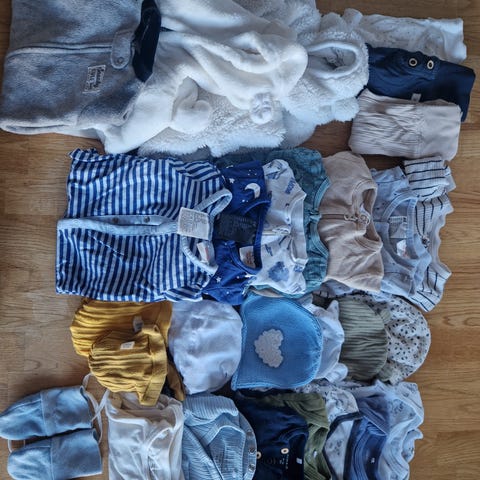 Noen plagg har litt bruksmerker, men de fleste er i fin stand.