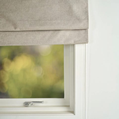Gir bort en liftgardin med skogmotiv i gråtoner.