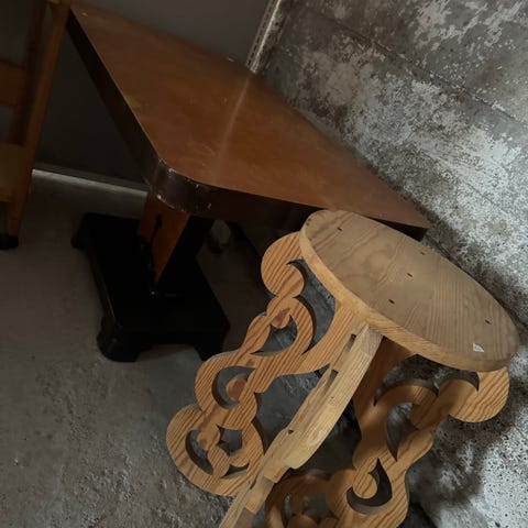 Eldre spisestuebord, bord til kontor, buesofa, kompakt stereo selges. Kom med bud