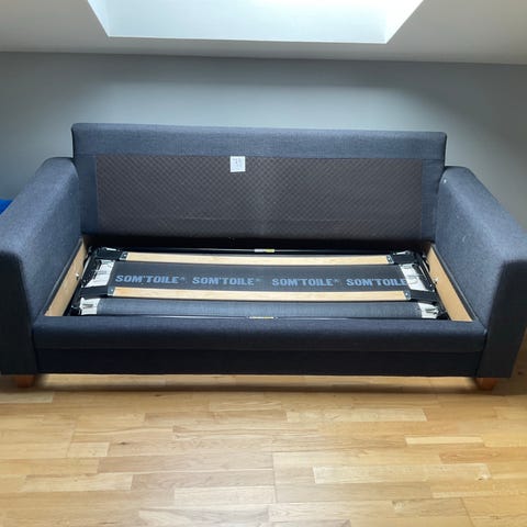 Selger denne Ikea sovesofaen da vi ikke har bruk for den lengre. Sovesofaen er fra Ikea og har blitt lite brukt. Vi har kjøpt inn en ekstra madrass fra Jysk høsten 25, denne følger også med.