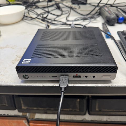 Porter: (OBS! den ene front USB porten er ødelagt og teipet over, men er fortsatt flere andre USB porter både foran og bak.)