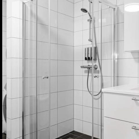 Dusjkabinett med svarte sprosser glass hjørneløsning