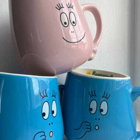 Selger 5 Barbapapa-kopper. De fleste er ubrukte og fremstår som nye da de stort sett har stått i skapet.