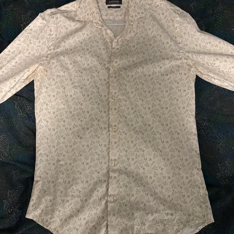 Matinique Easy Care skjorte for herre i størrelse S. Skjorten har rødt blomstermønster på lys bunn og lange ermer. Klassisk krage og knappelukking foran. Easy Care-materiale som gjør skjorten enklere å stryke og holde pen. Passer til både hverdagsbruk og mer formelle anledninger.