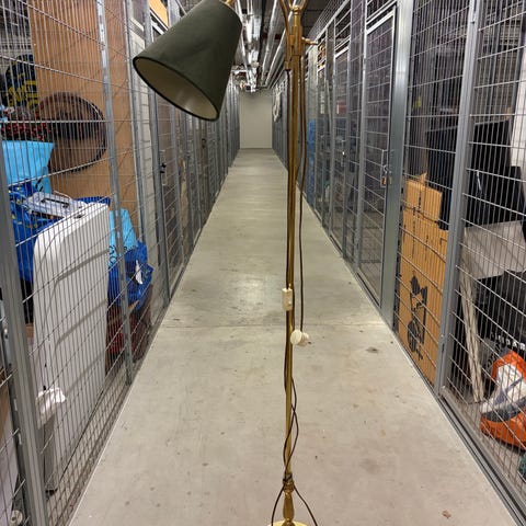 Høyde 38 cm og bredde 35 cm. Nostalgisk bordlampe i messing, fra 1970 tallet.