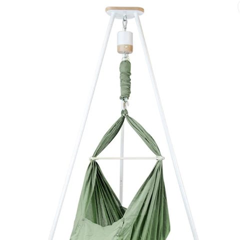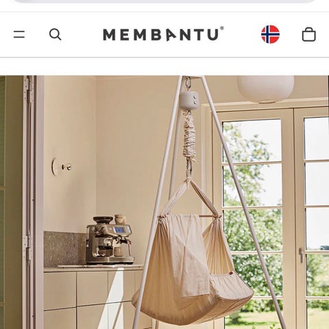 For å lese mer om modellen: https://sleepyb.no/products/sleepyb-slyngevugge-pakke-gra-stativ-motor-1