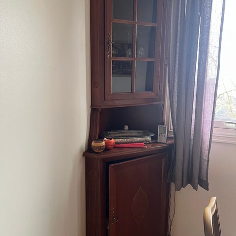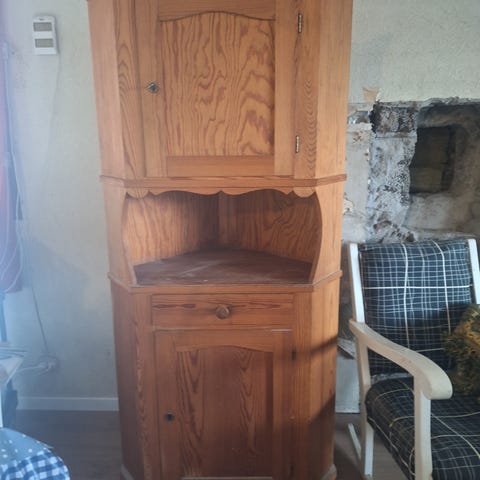 Hjørneskap med rosemaling - gis bort til gjenvinningsstasjon i dag (tirsdag)