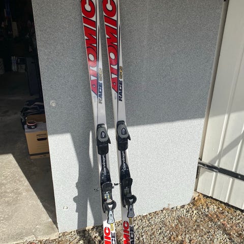 Atomic Race SG alpinski i lengde 212 cm. Modellen er en super-G racingski, egnet for høy fart i preparerte bakker. Leveres med Atomic-bindinger montert på skiene. R33