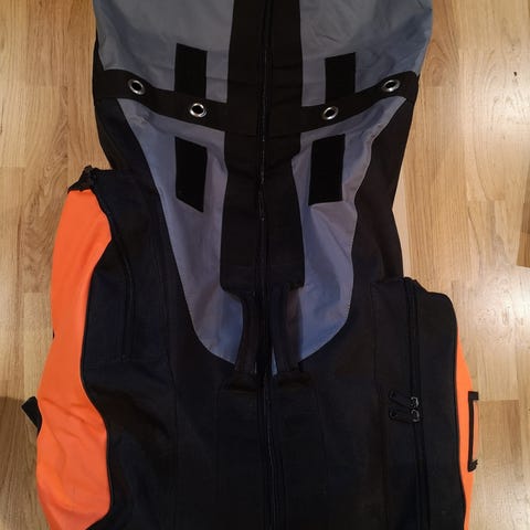 Skytterbag fra Skytterlinken. Godt brukt, men i god stand. Mange små rom med glidelås i bunnen av bagen gjør at du kan ha god orden. Flere lommer på siden av bagen. God å bære.