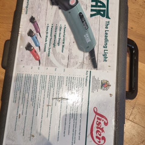 Lister Star klippemaskin for dyr med oppbevaringskoffert. Elektrisk klippemaskin egnet for klipping av større dyr, for eksempel hest eller husdyr. Leveres i hard plastkoffert med formtilpasset innredning for maskin, ledning og tilbehør. Maskinen har ledning og utskiftbart klippehode. Passer til bruk i stall, fjøs eller andre steder der det er behov for jevnlig klipping av dyr.