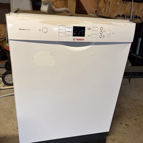 Oppvaskmaskinen er beregnet for integrering under benk. Fronten er hvit med betjeningspanel øverst. Innvendig har den flere kurver for plassering av tallerkener, glass og bestikk, samt egen bestikkurv. Maskinen leveres med tilkoblingsslanger som vist på bildene.