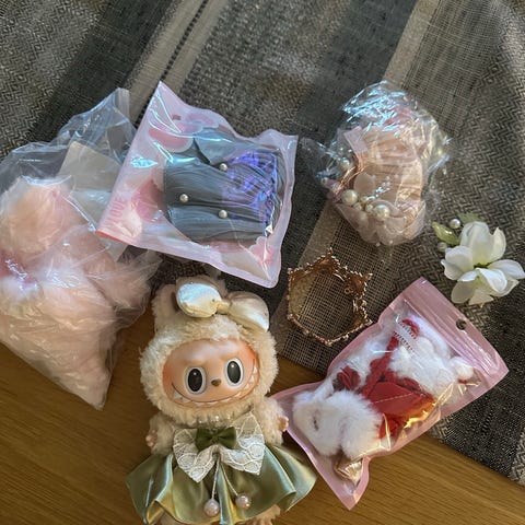 Portals kolleksjon veske og tilbehør sett hvit og rosa. Settet inneholder en liten håndveske/skulderveske i hvit med trykk av luftballong og skyer, justerbar skulderrem og topphåndtak. I tillegg følger det med rosa sko med hjerteprint, et rosa plagg med illustrasjon av en fe, samt flere små tilbehør som belte og nøkkelring/anheng med hjerte- og sommerfuglmotiv. Passer som koordinert antrekk med matchende tilbehør.