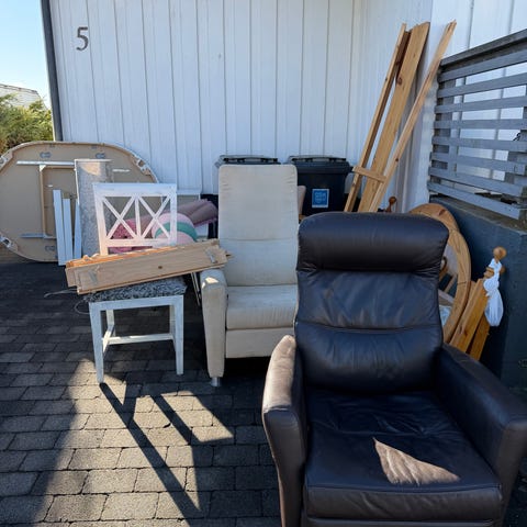 Det er ca 10 senger og nattbord som gis bort samt ett sett med sofa og spisebord som vist på bildene. Må hentes. Blir snart kastet om ingen tar det.