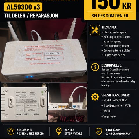 Enhetene er ikke testet, og selges derfor uten garanti.