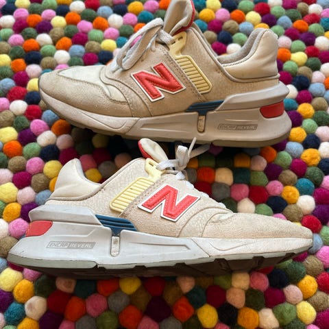 New Balance 997 sneakers i størrelse 38. Joggesko med flere farger. Overdel i tekstil og semsket materiale med klassisk N-logo på siden. Snøring foran og polstret hælparti.