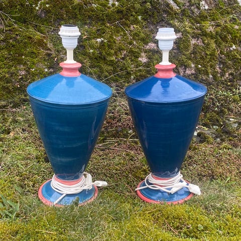 Bordlampe i keramikk med rund fot og tekstilskjerm. Lampen er i en lys beige farge både på fot og skjerm. Leveres med ledning og bryter på ledningen. Passer som nattbordslampe, på kommode eller skrivebord. Bruker standard lyspære med vanlig sokkel (se bilder for type).