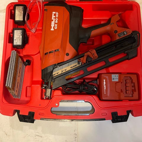 AEG 18V spikerpistol i oransje og svart utførelse. Leveres i koffert med lader, batteri og bruksanvisning. Egnet til spikring i treverk og lignende oppgaver der trådløs bruk er ønskelig. Batteridrevet verktøy som passer til arbeid på byggeplass eller i verksted der man trenger mobilitet uten ledning.
