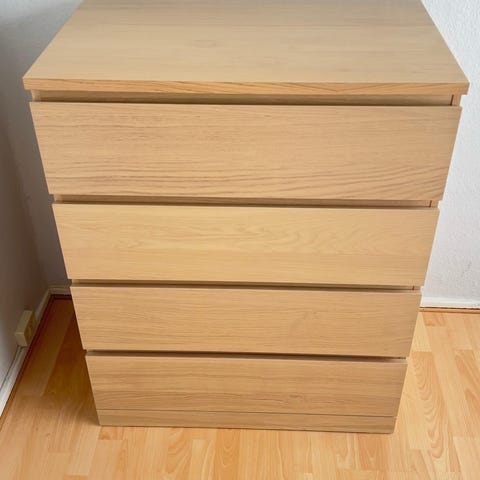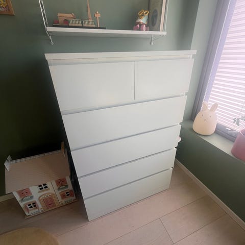 Selger to IKEA MALM kommoder med 6 skuffer i hvitbeiset eikefiner. De er veldig lite brukt og fremstår som som nye.