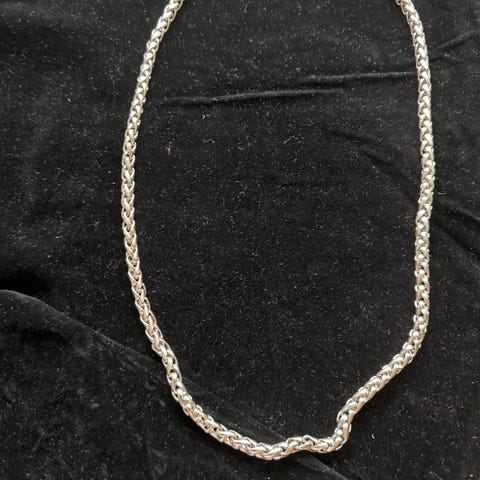 46 cm langt. Kraftig lenke. 1/2 cm høy lenke og 1 cm bred lenke