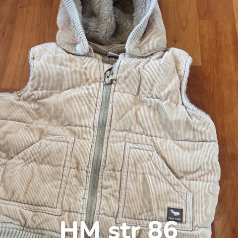 Pent brukt jakke i str 86. Kan bli til vest når man tar av ermene som har glidelås. Hetta kan også taes av.