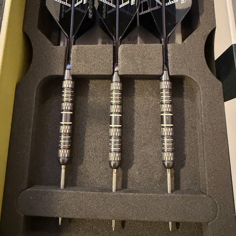 Red Dragon Peter Wright 50-års jubileums dartsett. Settet kommer i en egen jubileumseske og inneholder et komplett sett dartpiler med skaft og flights, samt ekstra tilbehør som ekstra flights og skaft. Designet er knyttet til 50-årsfeiringen av Red Dragon og er inspirert av Peter Wright-serien. Passer til bruk på standard dartskiver i hjemmemiljø eller klubbspill.