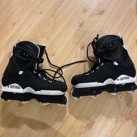 Valo aggressive rulleskøyter i svart farge. Størrelse EU 36–38 (USM 4–5, UK 3–4), produsert i Italia. Modellen har hard ytre støvel med snøring og spennelukking for støtte rundt ankelen. Understellet er tilpasset grind/park-kjøring med utsparinger for rails og kanter. Hjulene er montert i standard oppsett for aggressive skating. Egnet for bruk i skatepark og på jevne underlag.