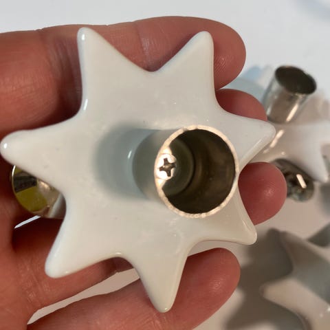 Kähler juledekorasjon lysestaker i hvit keramikk. Settet består av flere små lysestaker formet som trær, beregnet for tynne lys. Passer som borddekorasjon eller vinduspynt i julen. Nøytral hvit farge gjør at lysestakene kan kombineres med ulik annen julepynt og stearinlys i forskjellige farger.