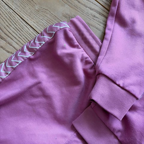 Selger en Hummel klespakke, hettegenser, bukse, skjorts og tskjorte. Alt i str 140 / 10y. Kun brukt ett par ganger! Lyse rosa farge.
