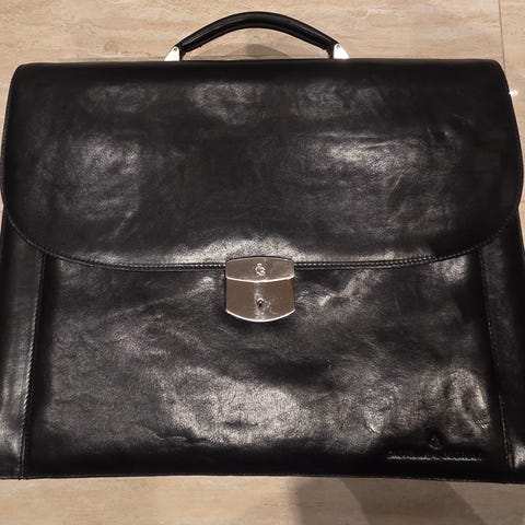 Det beste italienske skinnet er valgt for Firenze Business-serien for å gi det en unik naturlig karakter. Veskene er laget av glatt italiensk okseskinn, et fullnarvet skinn som gir et voksaktig og behagelig preg. Svart.